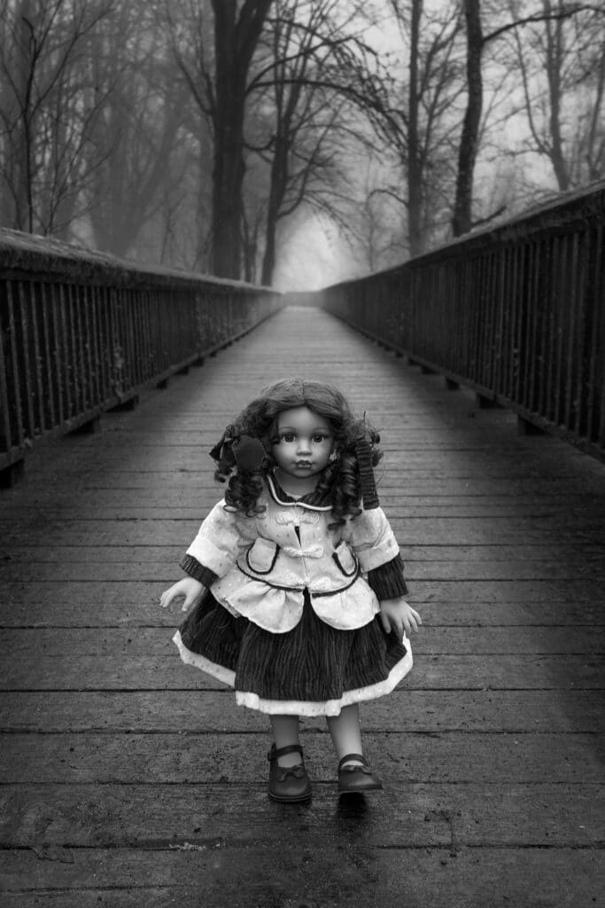 The resulting image sparked a new creative direction. Since then, Thomas has continued to stage these figures in unexpected locations, creating scenes that feel mysterious and narrative-driven. Rather than focusing on shock value, the dolls function as characters within the environment, encouraging viewers to imagine the story behind the photograph.